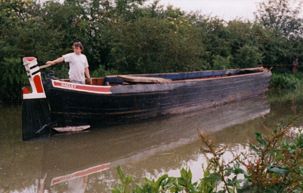 Hagley being bow-hauled down the Aylesbury arm, after fitting of the rudder.