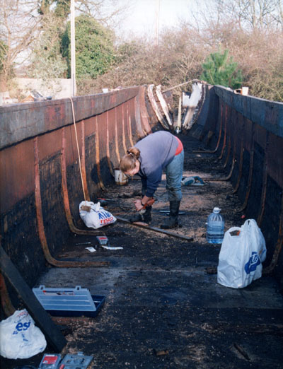Patching bottom boards.